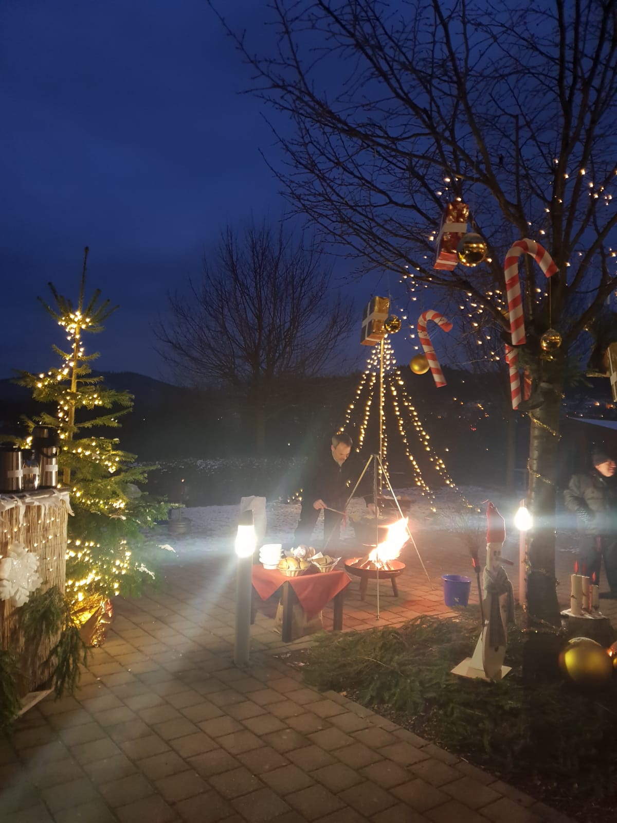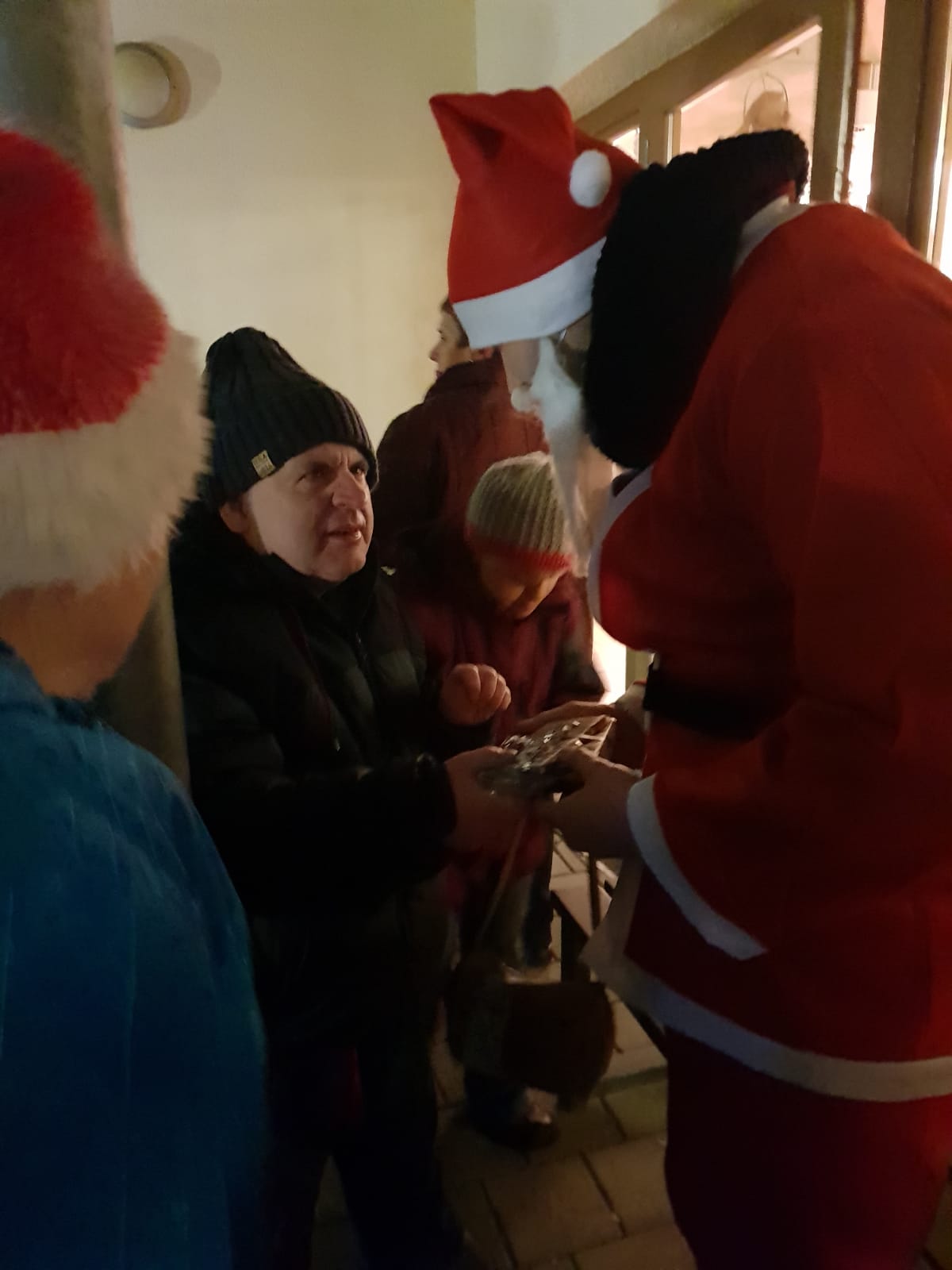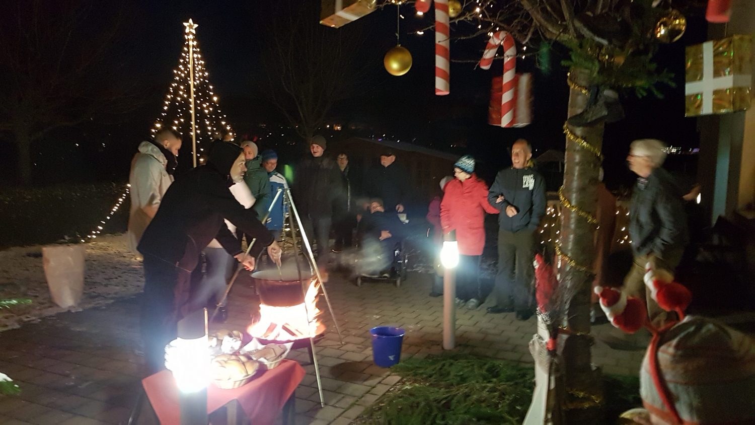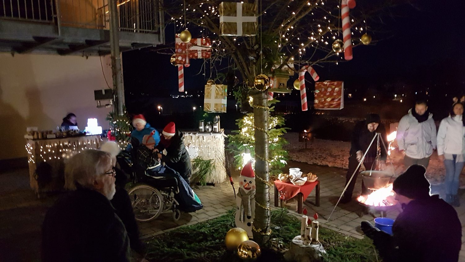 Zu Besuch waren auch der Weihnachtsmann und das Christkind. Als besondere Überraschung spielte der Vater eines Bewohners auf seinem Alphorn schöne Melodien. Bei Glühwein oder heißem Punsch konnten die Bewohner und ihre Angehörigen zusammen mit den Betreuern ein paar besinnliche Stunden verbringen. Die Augen aller Anwesenden leuchteten vor Begeisterung!
