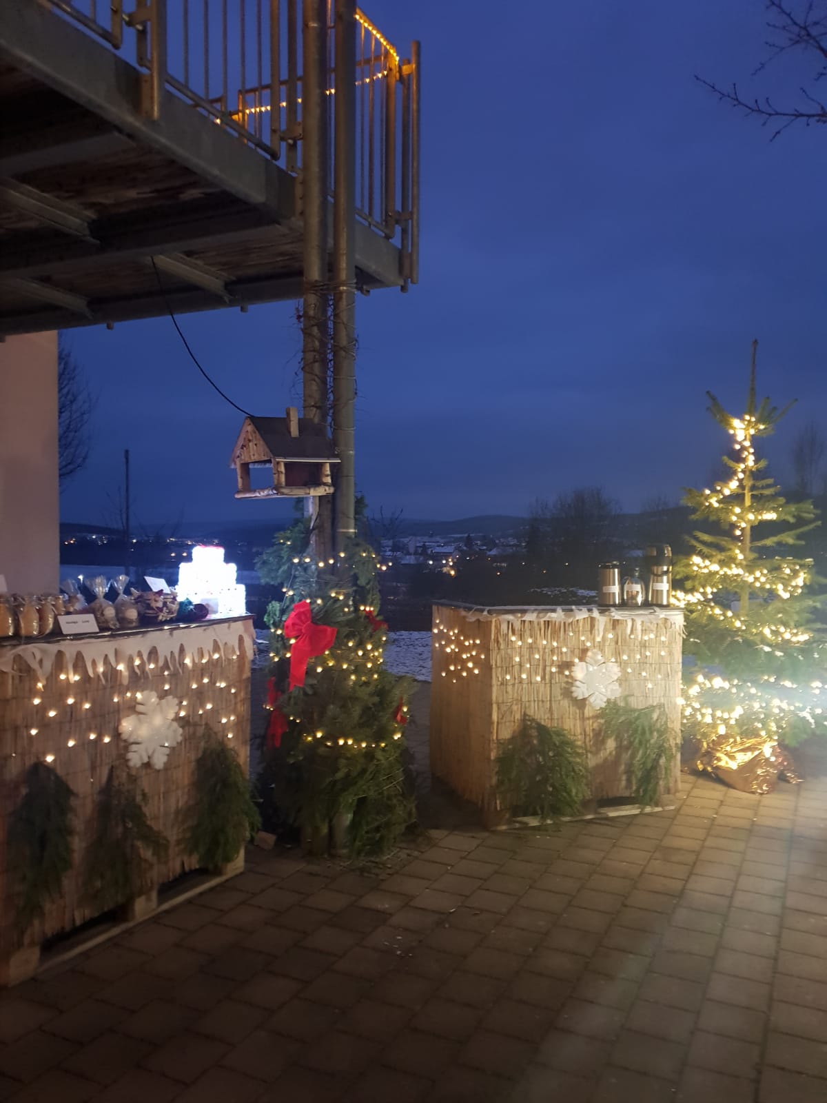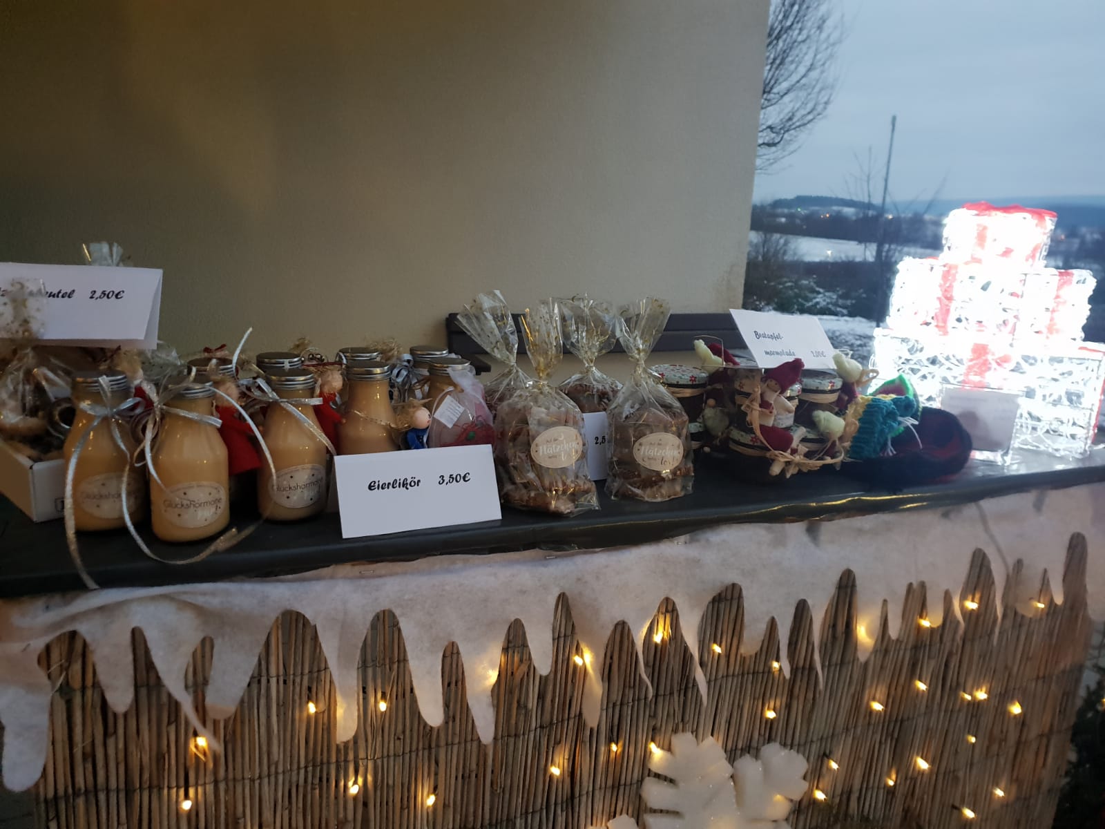 Viele Lichter waren am 14.12. im Garten des Wohnhauses Oberpörlitz angezündet. Und nicht nur das. In diesem Jahr haben sich die Betreuer und Bewohner der Wohngruppe im Untergeschoss des Hauses etwas ganz Besonderes einfallen lassen. Der ganze Garten wurde in einen weihnachtlichen Adventsmarkt verwandelt. Schon Wochen vorher roch es im Haus nach selbst gebackenen Plätzchen und Lebkuchen und Bratapfelmarmelade aus eigener Herstellung, die für den Weihnachtsmarkt vorbereitet wurden. Es wurde Stollen gebacken und Eierlikör zubereitet, Gulaschsuppe gekocht, gewerkelt und dekoriert.