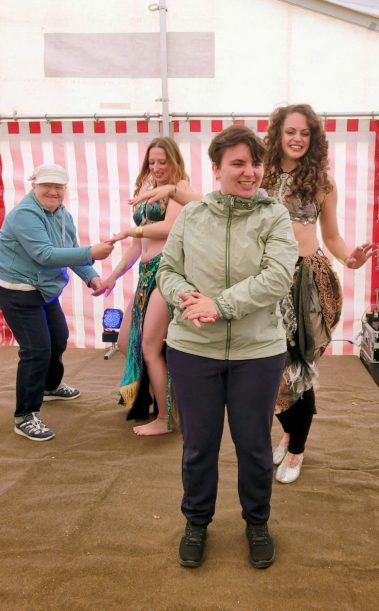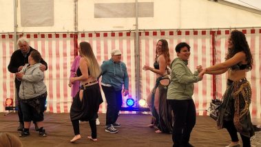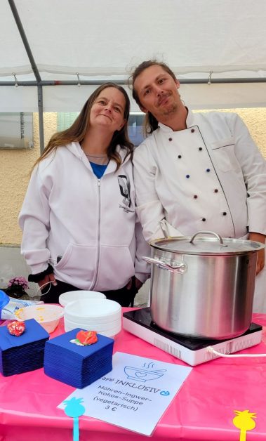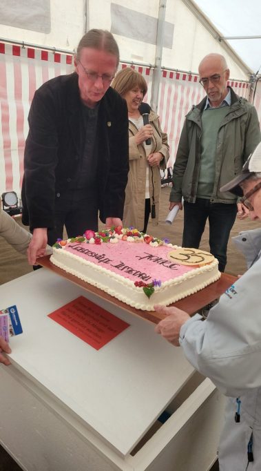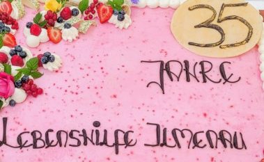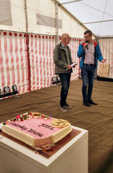 Im Festzelt gab es gleich zu Beginn eine tolle Überraschung: der Landesverband der Lebenshilfe Thüringen e.V. spendierte eine wirklich große und leckere Torte zum Geburtstag, die an alle Festbesucher verteilt wurde. Außerdem sorgte ein buntes Bühnenprogramm mit Tanz und Gesang für außerordentlich gute Laune, bevor man sich danach an den verschiedenen Ständen bei Getränken, Kaffee, Kuchen, Eis oder Bratwurst, Bowle oder Suppe stärken konnte.