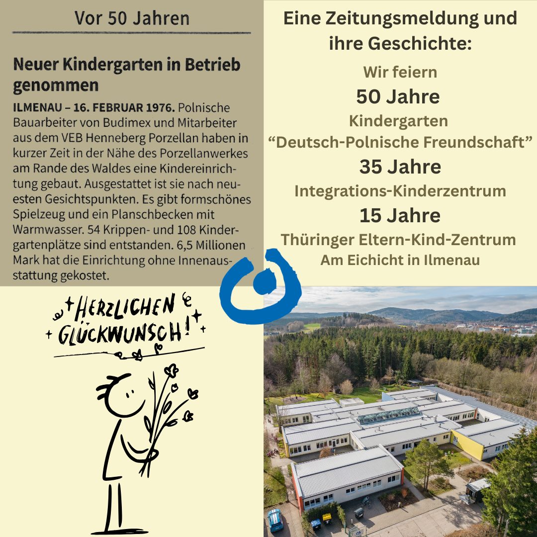 Tausende Kinder und Familien wurden seitdem auf dem großzügigen Gelände und in den inzwischen natürlich modernisierten und kindgerecht ausgestatteten Räumen des Kinderzentrums im Wohngebiet Am Eichicht in Ilmenau begleitet.
