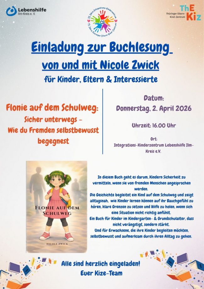 Buchlesung „Flonie auf dem Schulweg“ Und darum gehts: Um Kinder auf dem Schulweg gegenüber Fremden stark zu machen und ihnen ein gutes Sicherheitsgefühl zu vermitteln, hat die Autorin Nicole Zweck…