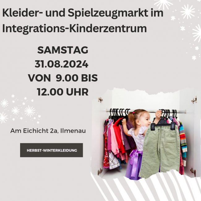 Der erste Basar für Kinderbekleidung der Frühjahrs- und Sommersaison und Spielzeug, Bücher, Kinderfahrzeuge, Kinderwagen, Umstandskleidung und Babyzubehör findet am 01.03.25 im Integrations-Kinderzentrum statt. Von 9.00 bis 12.00 Uhr können Sie…